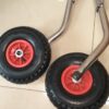 Транцевые колеса, установленные на моторно-гребную лодку ПВХ с жестким транцем, существенно, упрощают транспортировку судна от воды до места стоянки. Закрепляются на транцевой плите при помощи винтов и гаек. Имеют фиксаторы в рабочем и сложенном положении. Надувные колеса позволяют приспособиться к различному типу грунта, изменяя давление в шине.